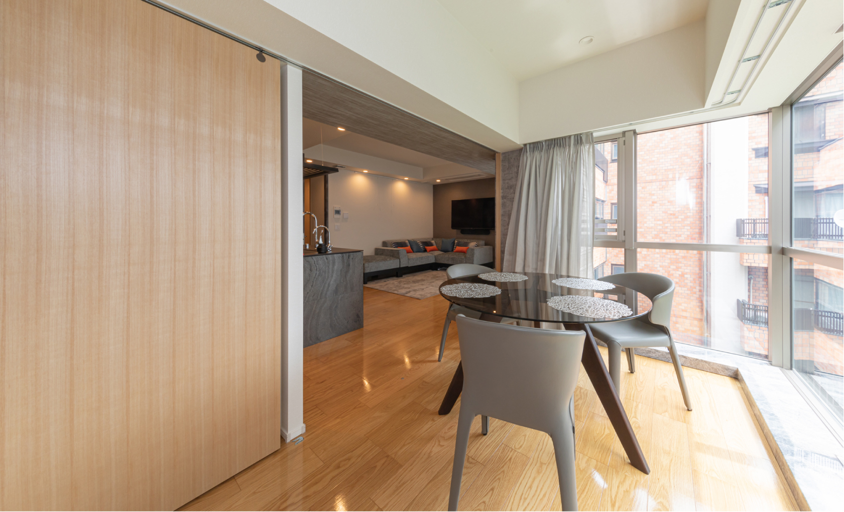 赤坂の一等地にある高級分譲マンションをLDKから見渡せる森とマッチさせるデザインを致しました。